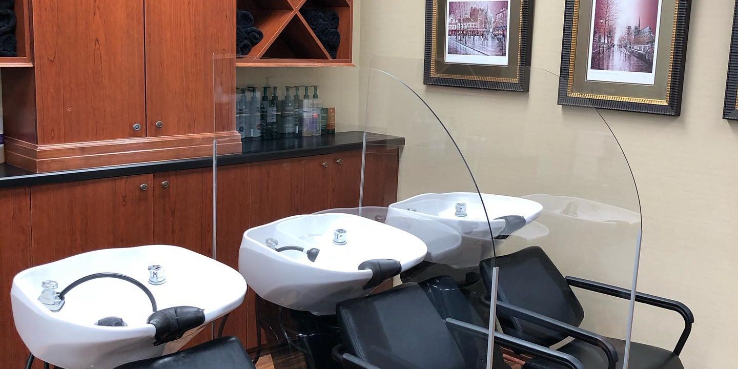 We observe CDC guidelines for disinfection of all equipment and surfaces using Barbicide, disinfectants, and UV Sterilization. Plexiglass partitions and social distancing separate guests.